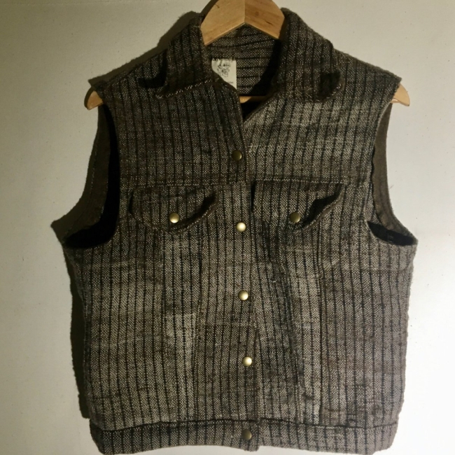 Trame : Laine filée au rouet (croisée Engadine/Hampshire)